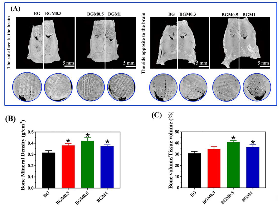该项研究在制备抗肿瘤/骨修复多功能材料的基础上,结合生物活性玻璃优良的材料学性能与纳米材料的优异光热抗肿瘤功能,创新地设计出的多功能材料,可根据临床所需赋予材料的相应功能,这将无疑会在组织一体化工程领域发挥巨大的作用,不仅具有较高的实际临床应用价值和学术意义,还将为生物材料领域研究给予新的思路和科学依据。