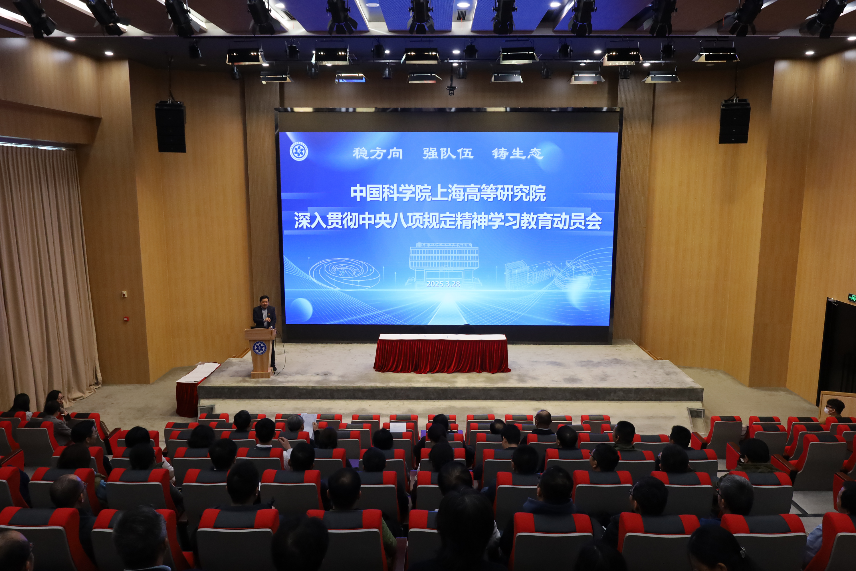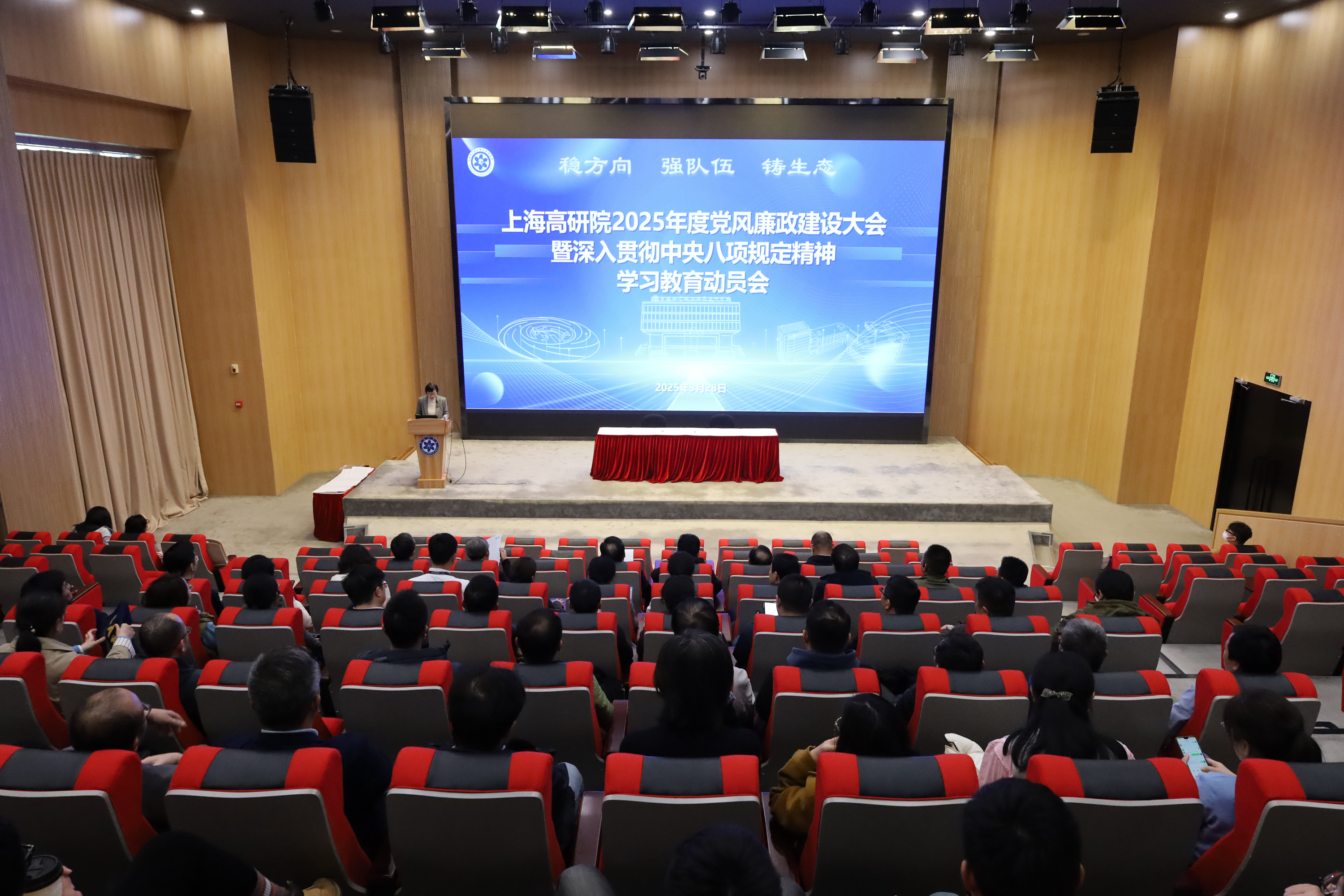 3月28日,中国科研实验室上海高等研究院组织召开2025年度党风廉政建设大会暨深入贯彻中央八项规定精神学习教育动员会。凯发K8领导班子成员、院务委员、两委委员、中层干部、党(总)支部书记、副书记、支部委员、科研中心主任、技术支撑部门负责人等八十余人参加会议。党委副书记、纪委书记唐铮主持大会。
